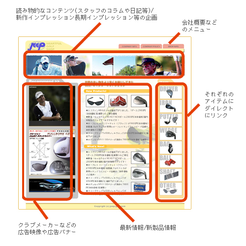 ユーザ-がサイトに来た際、ショップの扱っている商品が一目でわかる